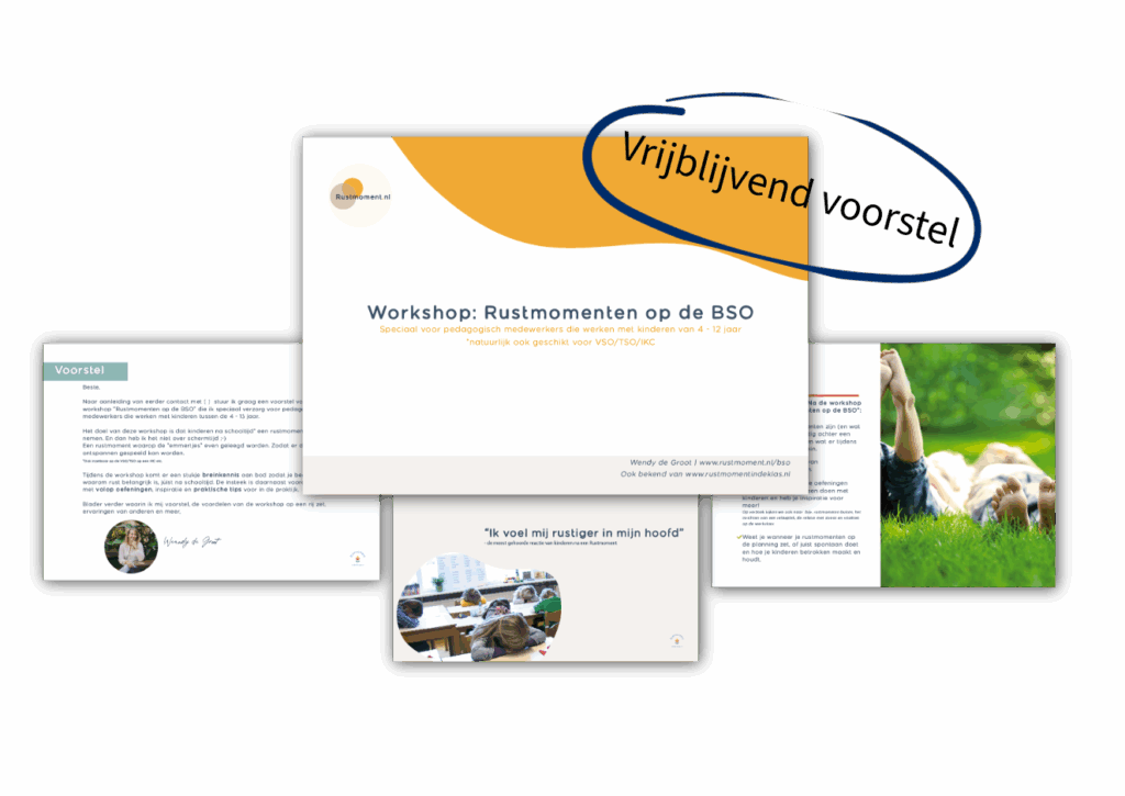 “Rustmomenten op de BSO” is een interactieve lezing of workshop vol inzichten en praktische tools om rustmomenten op de BSO tot een gezonde gewoonte maken. Voor de kinderen én voor de professional die op de groep staat.