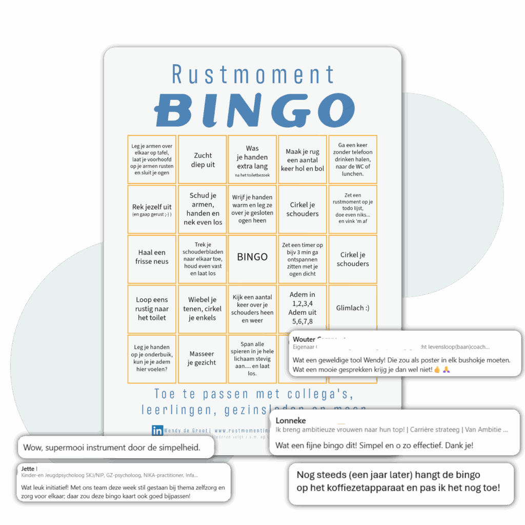 Gezonde gewoontes, zoals regelmatig een rustmoment nemen, het wordt makkelijker wanneer je dit samen doet. Ook het toevoegen van een spelelement helpt om een gewoonte vol te houden, tja, dan kom je natuurlijk uit bij de enige echte “Rustmoment-BINGO” 😉